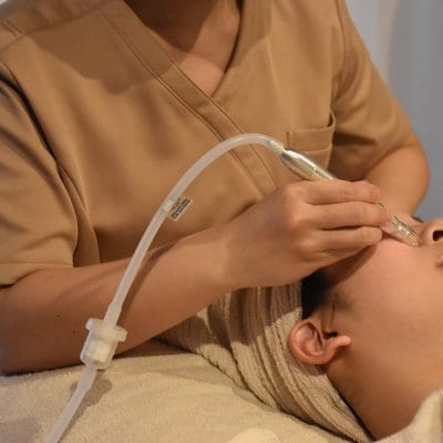 毛穴すっきりコースに加えて、デコルテにはスクラブマッサージもプラスし、イオン導入で濃度の高い美容液を肌の深部に届けます。