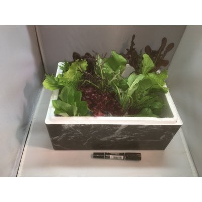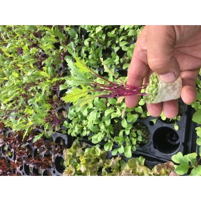 お客様に目の前で収穫するパフォーマンスもできます。 これはマイクロリーフプラグトレーで厨房で収穫でき鮮度抜群です。