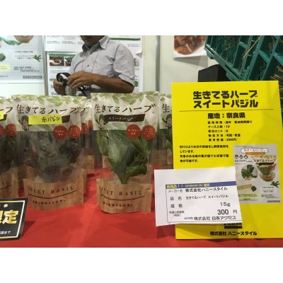 近畿の大手スーパーにもお取引を6年ほどいただいています。これは生きてるスイートバジルという商品です。
