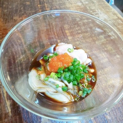 日本海の繊細な白身魚、こりこりのつぶ貝、お酒が進むクジラの味噌ずけ、しめ鯖、めばちまぐろのお刺身の他にも季節の魚介類を用意しています。