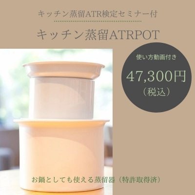 これらを活用するということは、”香食同源” つまり、香りと食の2つの側面から健康へのアプローチを行うということなのです。 つまりは、未病改善に役立てることができるということです。 キッチンで蒸留中は少しの蒸気がもれ、よい香りに満たされます。 キッチンで行う蒸留、「キッチン蒸留」を取り入れると、素材を大切にすること、きちんとお出汁をとること、丁寧な暮らしをすることなど、人間として大切な原点に立ち戻ることができます。 香りを作り、感じ、食に取り入れる楽しみやその大切さに気づかされます。 香りは心を作り、食は身体を作ります。 ATR POTは、おいしさ、楽しさのその先に、”健康寿命を延ばす”ということを叶えます。