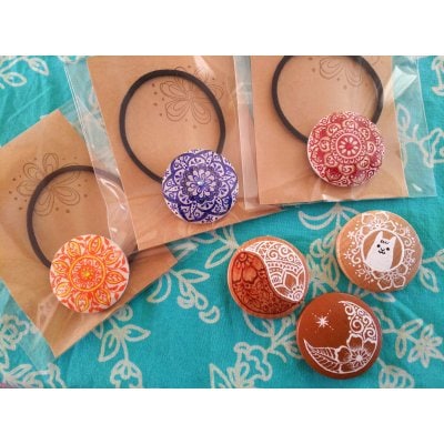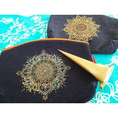 そんなメヘンディ(ヘナアート)を体はもちろん、様々なアイテムにもアートしていきます。体以外は、ヘナやジャグアの天然染料ではなく素材にあったインクを使い、布やガラス、木材になど様々なものにアートをしていきます。