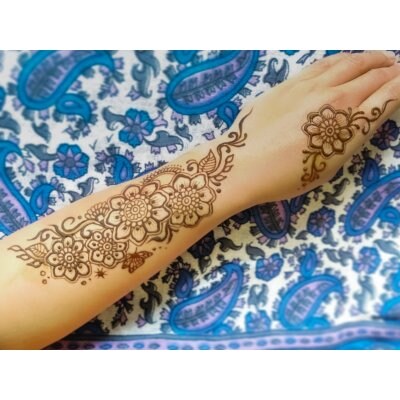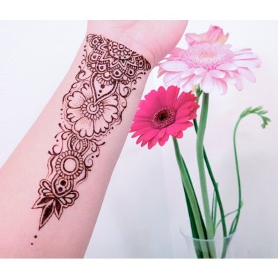 メヘンディ(ヘナアート)は、天然染料のヘナで肌を染めるボディアートです。中東やインド、アフリカや様々な地域で伝統文化として描かれてきました。幸運を願ったり、お守りとして描かれた美しい模様は 10日ほどで消え、ファッションとして気軽にお楽しみいただけます。