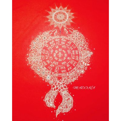 タロットを始める上で、クロスは重要なアイテム。自分だけのオリジナルのものを作りたいと思い、手作りクロスにタロットカードからのメッセージをのせ、手描きアートで描きました。想いを描いたクロスからは、守られ支えられる強いパワーを感じ、以降、楽しいをカタチにしていく面白さに、ブルーミングアートやメヘンディアートの虜になっていきます。