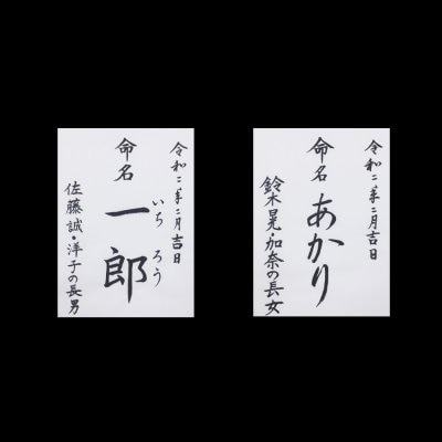 最初は、娘の友人に子供が生まれ、命名の書の依頼をいただきました。
