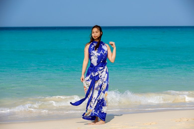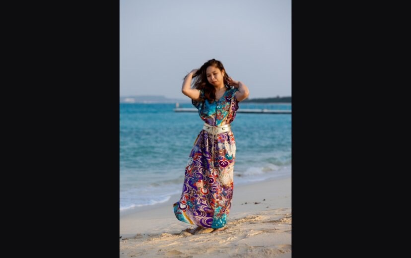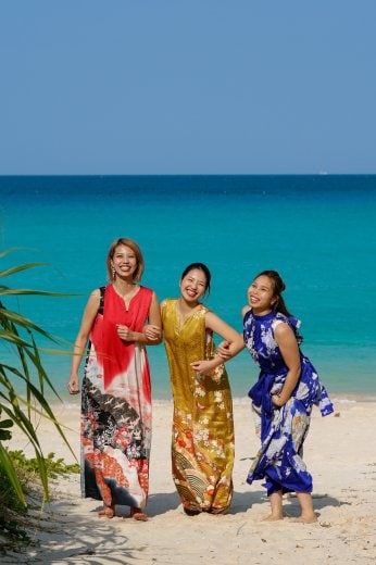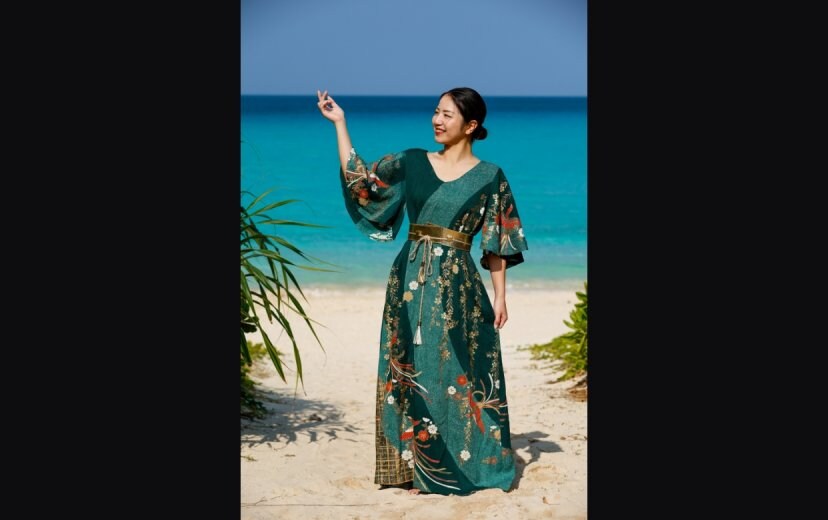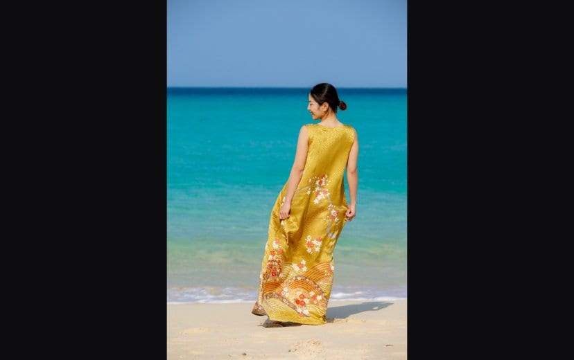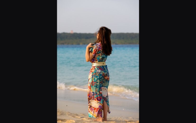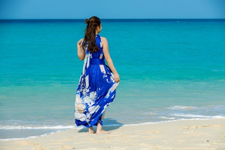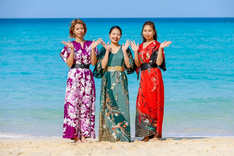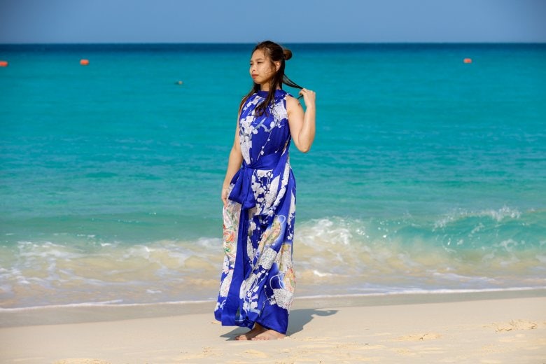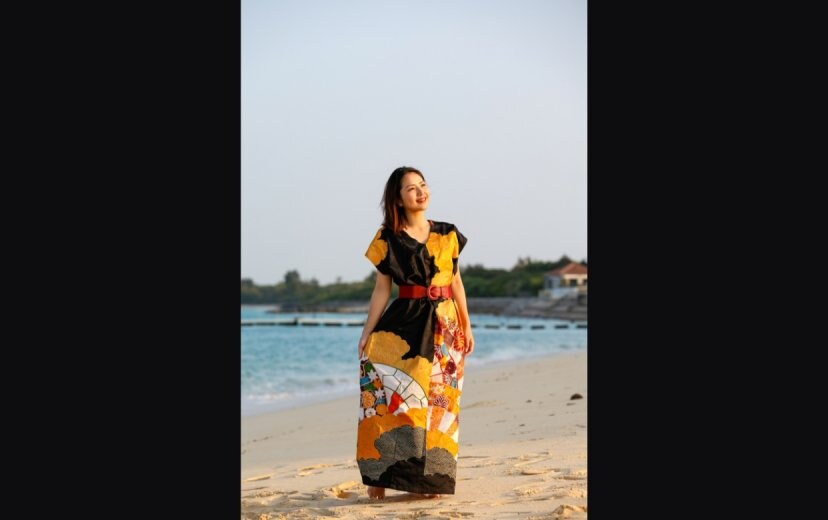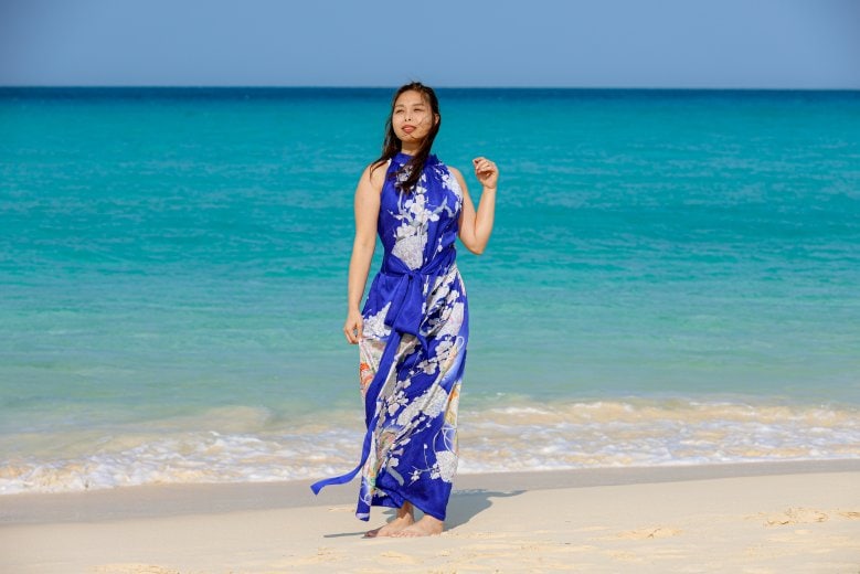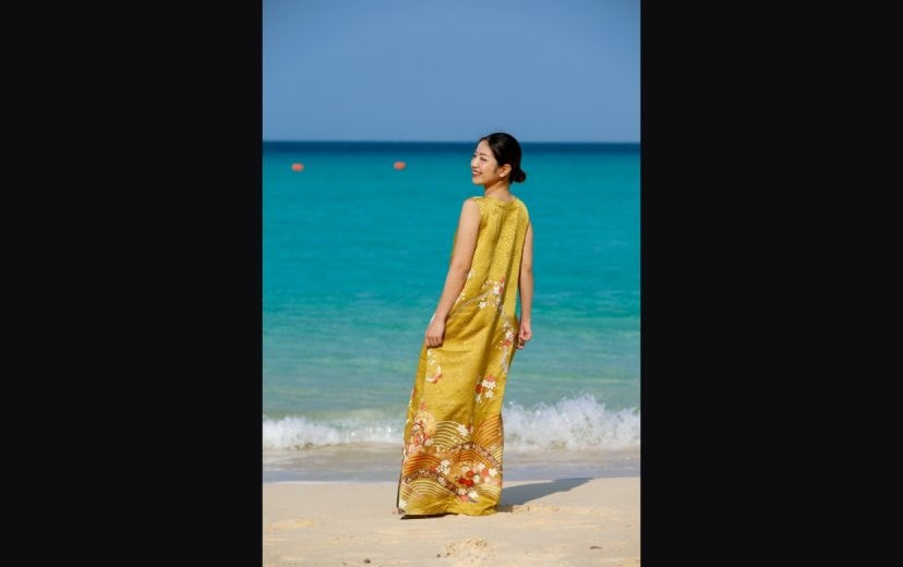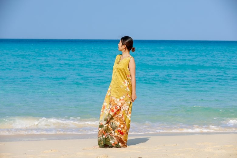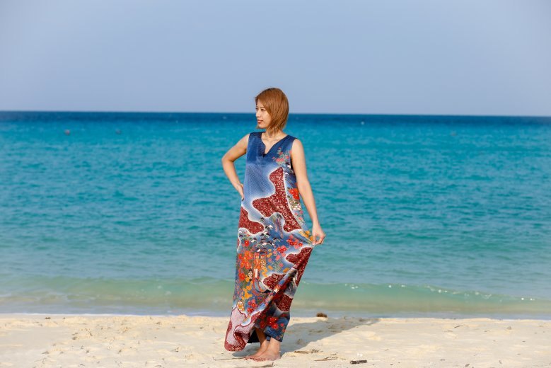 宮古島発、和とリゾートを融合させた振袖リメイクワンピース。