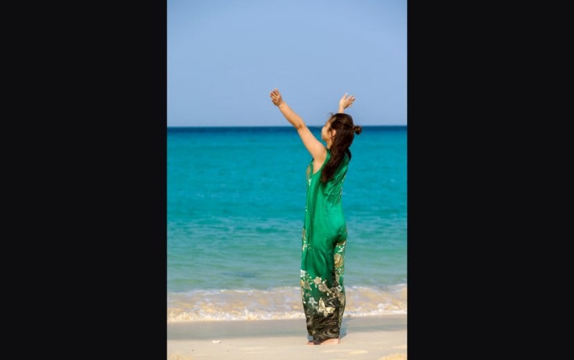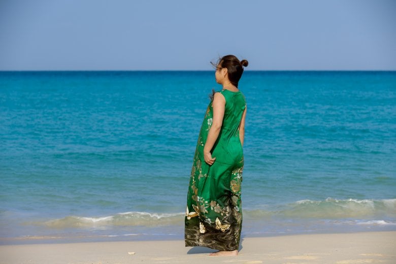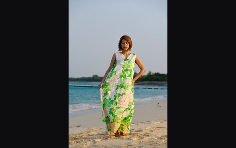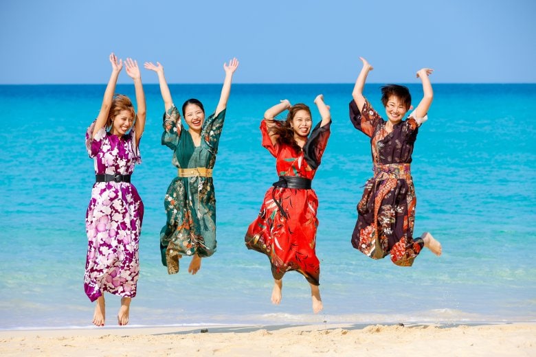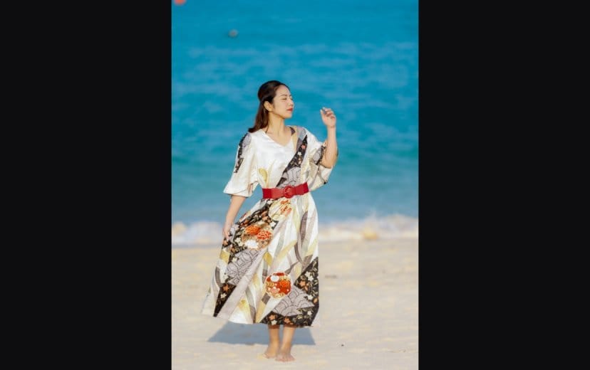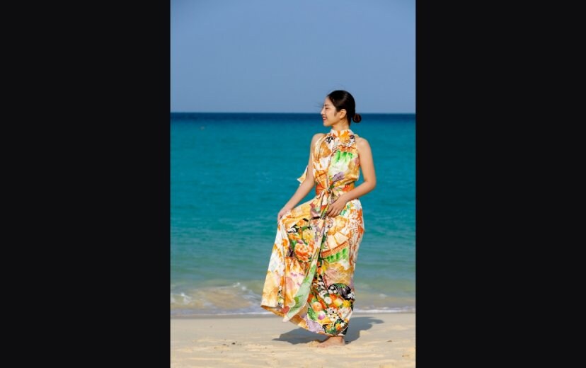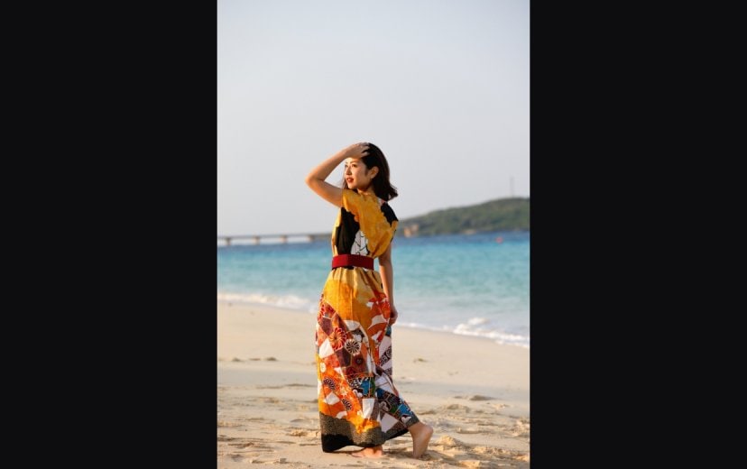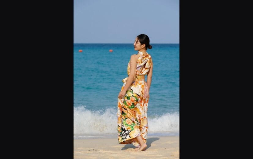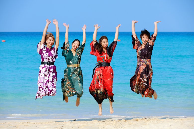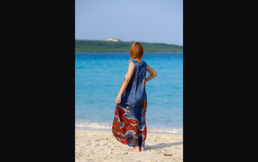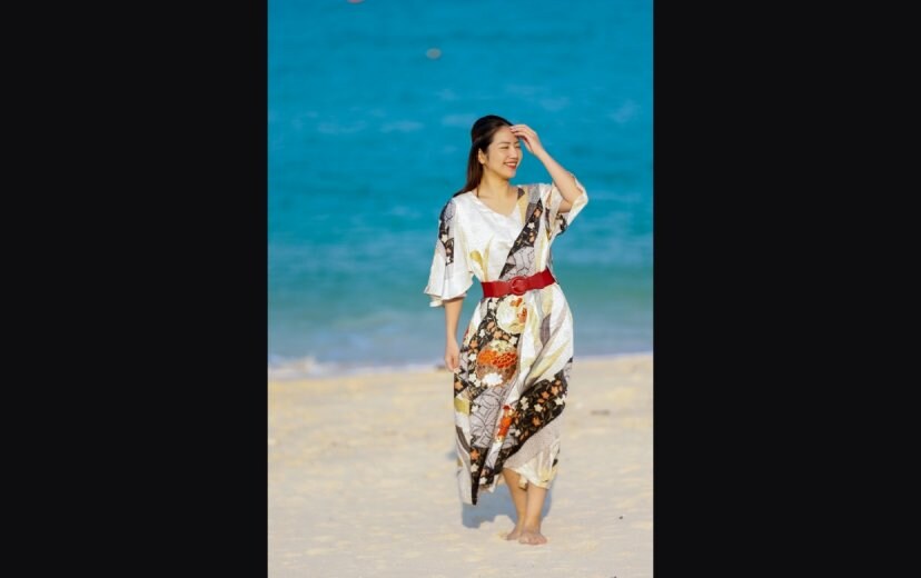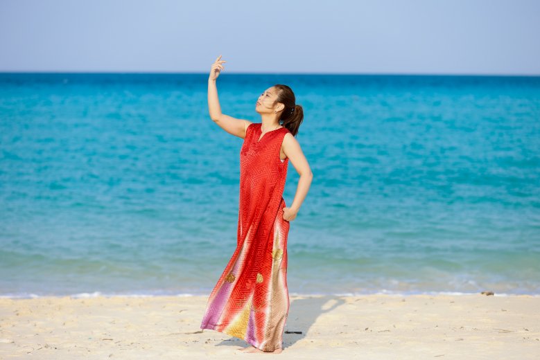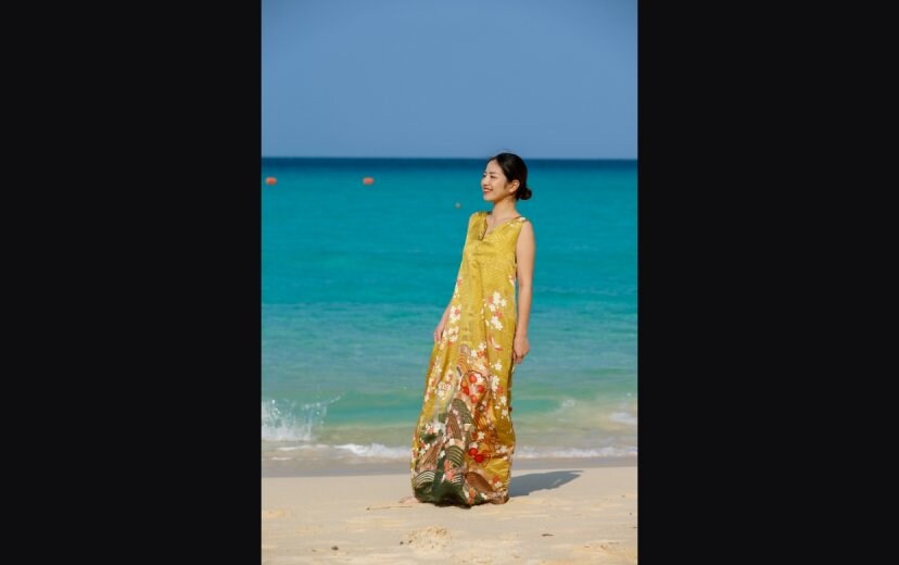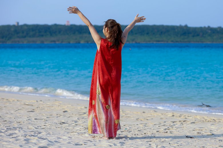 宮古島発、和とリゾートを融合させた振袖リメイクワンピース。