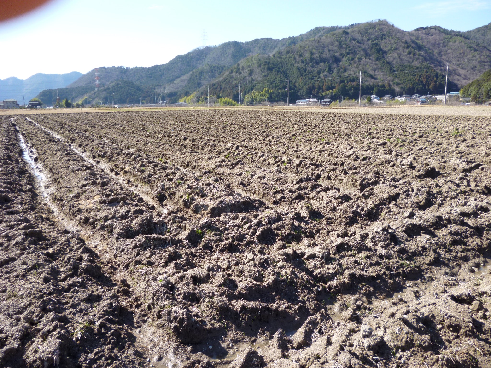 「収穫後にカヤや麦わらなどの茎が中空の植物を混ぜ、しっかりと耕運機で天地返しする。土が凍ってほぐれるとともに、土壌の酸素量が増え、団粒構造になる。」と語る。