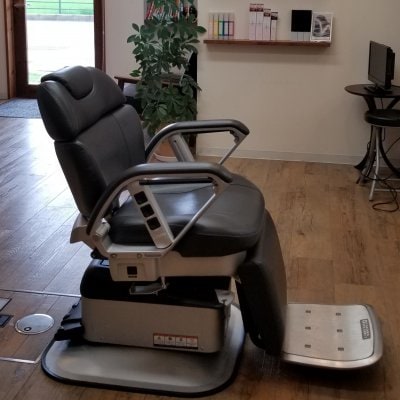 自宅兼サロンで10坪程度の広さに待合のイスと、理容椅子が1台あります。