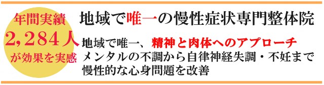 メンタルの不調から自律神経失調症・不妊まで慢性的な心身問題を改善していきます。