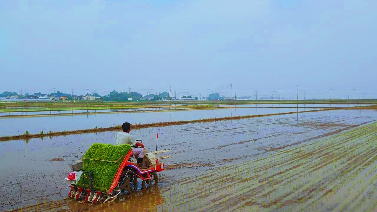 田植えが終わった田んぼには白鷺の姿が この時期ならではの景色に |