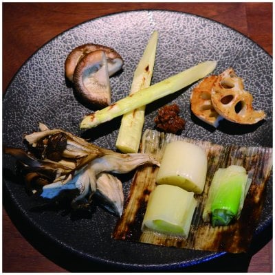 焼き物のメインに使っている塩は、海の塩・岩塩・藻塩・梅塩など6種類の塩を自分たちでブレンドしています。さらに、炭火焼ステーキに合うのはこれ、焼き野菜ならこれ、魚介ならどれかな、など塩専門店で味見をして探してきます。