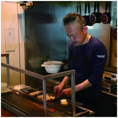 義父母が札幌円山で37年営んできた「やきとり鉄八」が、2013年11月に「円山炭馳走鉄八」に生まれ変わりました。地域に親しまれてきた「鉄八」の名を残しつつ、あらゆる食材のうまさを炭火で引き出す料理で、新たな歴史を刻みたいと日々励んでいます。