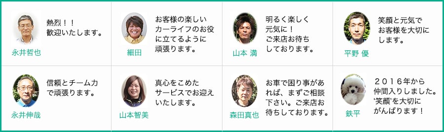 一、お客様のご要望にすばやくお応えし、カーライフサポートをする。