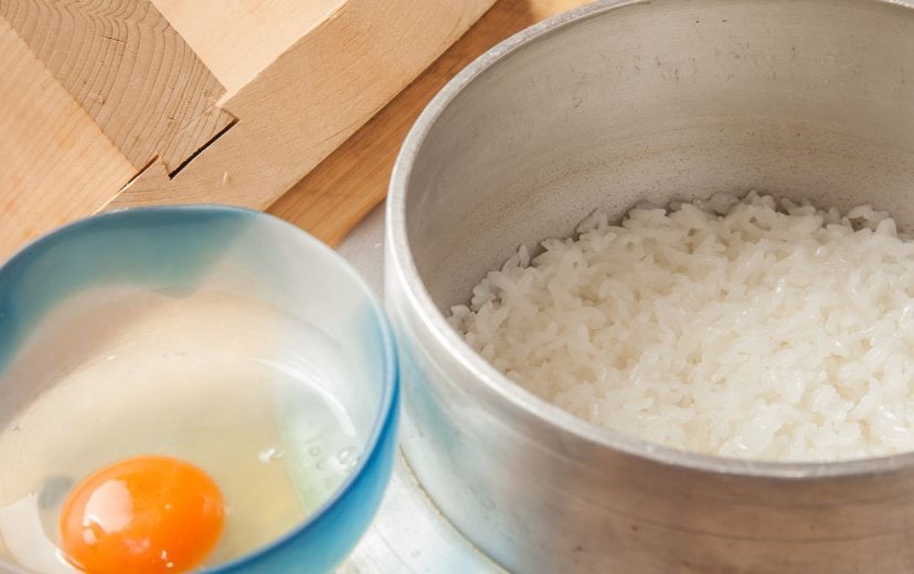 奈良県産のお米をご注文が入った時点で釜で炊き上げたご飯とこだわり卵でT