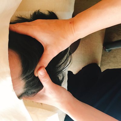 頭、顔、首の細かな筋肉を念入りにゆるめます。