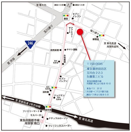 バス:渋谷-二子玉川間・瀬田停留所下車、徒歩5分