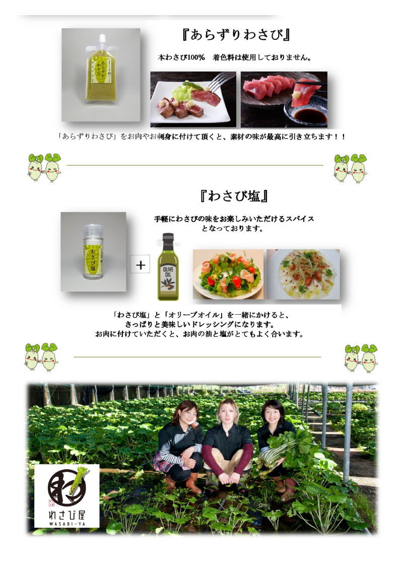 店舗では生わさびの販売はもちろん、オリジナル商品であるわさび塩やわさび海苔
