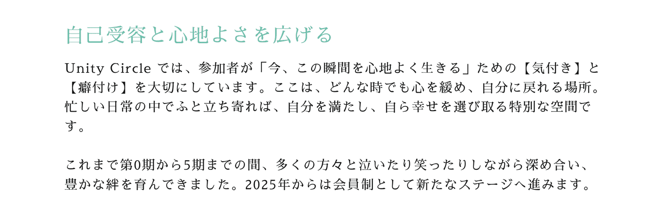 「今」この瞬間を心地よく生きるをテーマにした心温かなコミュニティです。