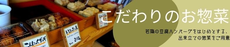 若鶏の豆腐ハンバーグをはじめとする、揚げたての惣菜をご用意。