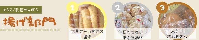 ▶︎ とうふ家豆てっぽうこだわりの豆腐や揚げ