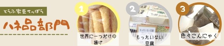 こだわりの豆腐に加え、日によって替わる名物【ハネ品】も魅力の一つ!!
