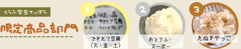 とうふ家豆てっぽう本店や直営店にて、ぜひチェックしてみてください!