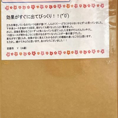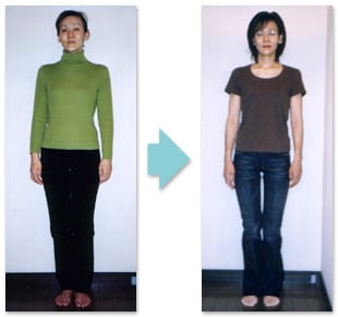 確かに外見、太っている方ではありませんでした。 しかし、上半身と下半身のバランスがあまりにも悪く年々、下腹部、太モモが 又、冷え性、便秘、低血圧といった症状もあり、痩せるだけでなく体 主人と一緒にしたこともプラスとなり間食も絶ちきれ、甘いものを食べなくても そう思った頃、毎日、排便があり体も温かくなってきましたし、 又、お腹、おしり、太モモも小さくなり今まで11号サイズのズボンを 又、18年がたちますがリバウンドなく維持しています!! |