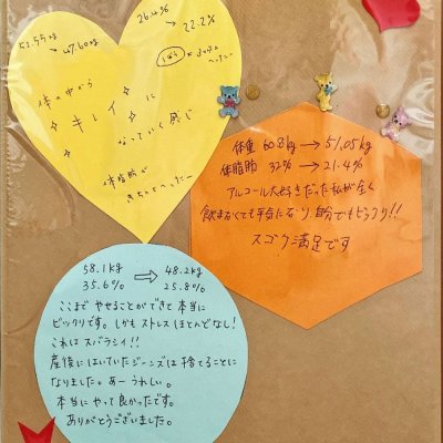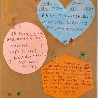 痩せない体質はありません。 特にアドバイスや、お約束を素直に実行された方はきちんと痩せることができます。 |