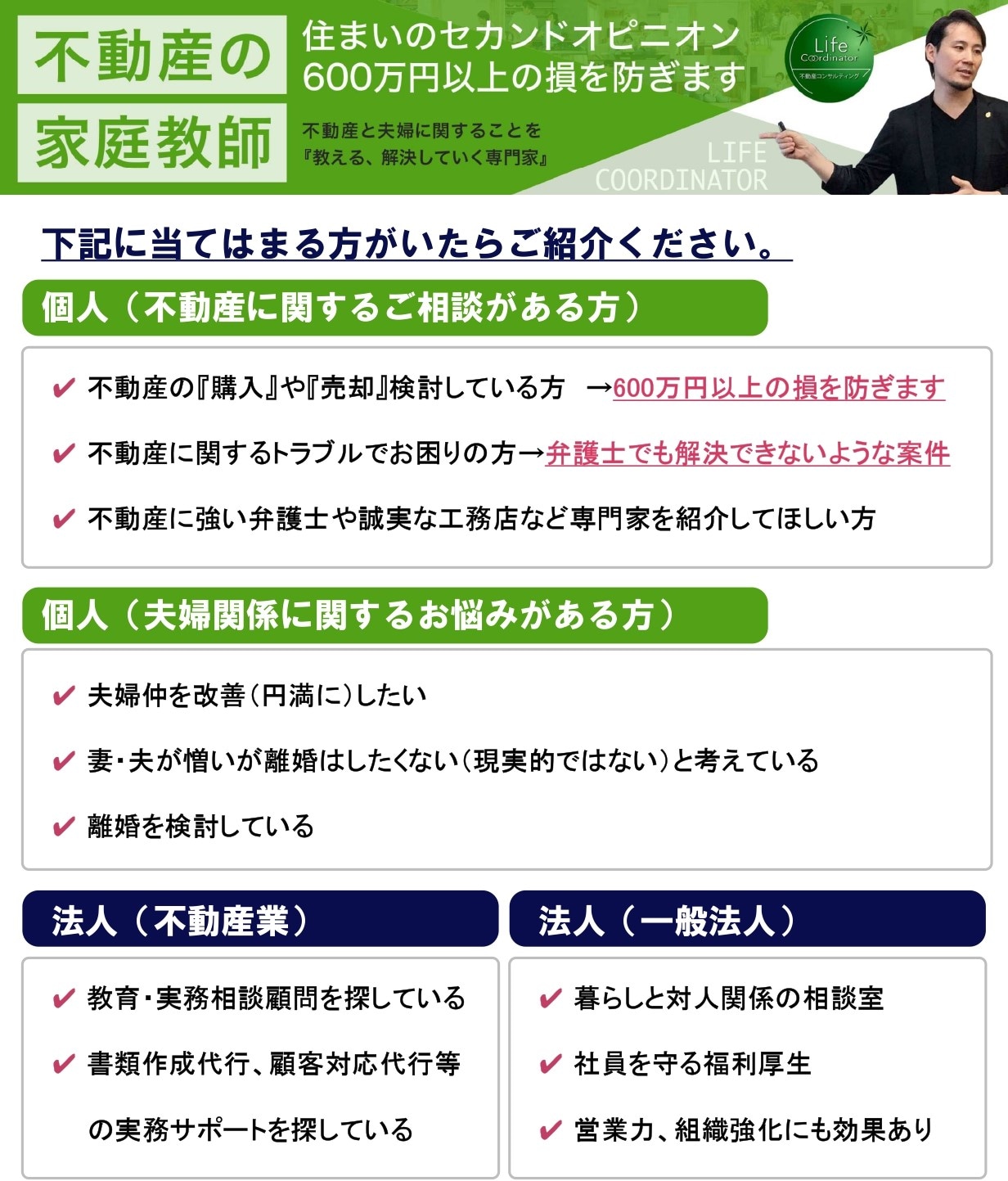 不動産に強い弁護士や、誠実な工務店など専門家のご紹介もしております。