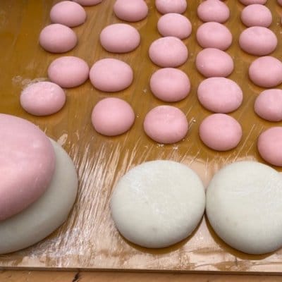 もち米(ヒメノモチ)を使用して杵つき製法にて作ってます。