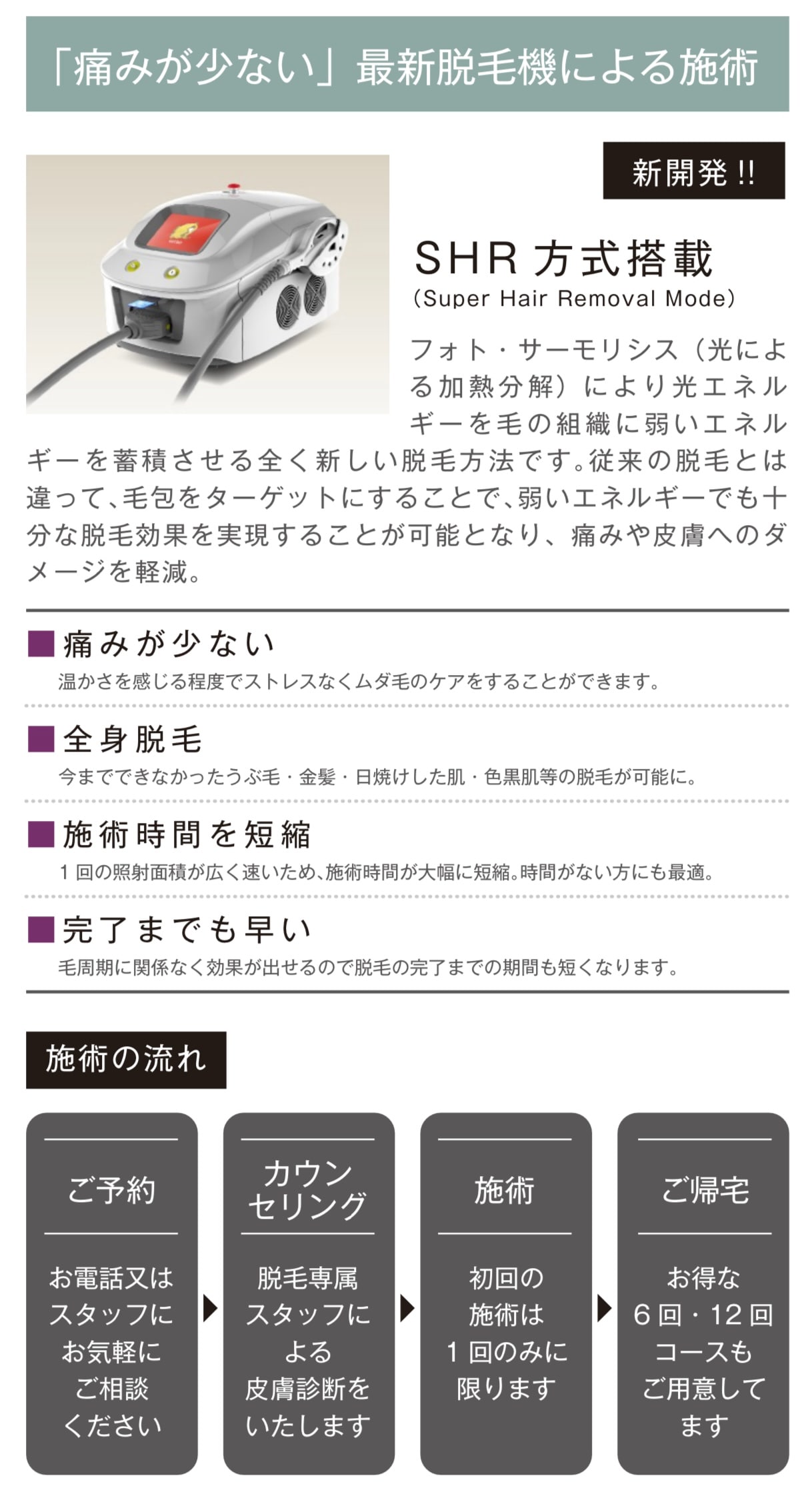 「脱毛って痛そう」「やってみたいけど料金が...」「通うのが倒くさい」 脱毛ってそんなイメージをお持ちではないでしょうか?