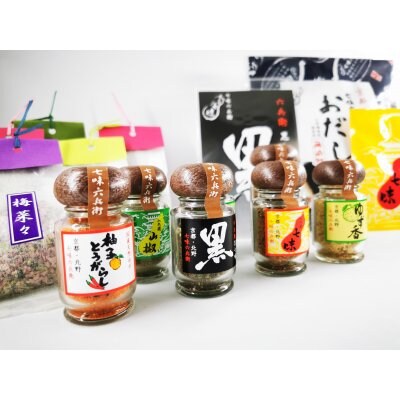 七味六兵衛名物 「六味」や「七味六兵衛のおだし」など販売いたします。