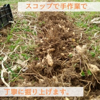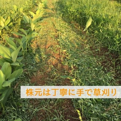除草剤も使わないため、発芽後に葉が成長するまでに行う除草では、株元の草は手刈りして行い、掘り起こしや選別、ヒゲ根切り作業も手作業で行なっています。そのため、1シーズンにあまり多くの商品をお届けすることができません。