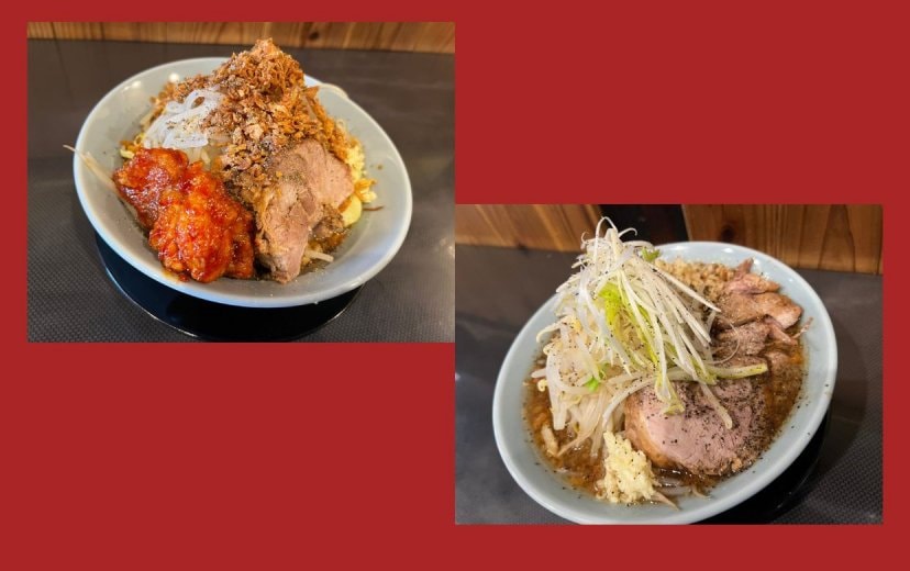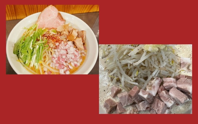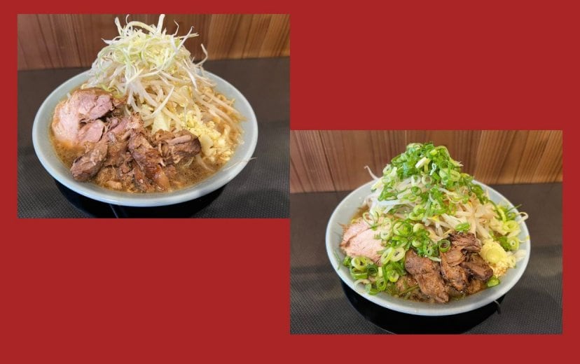 二郎系ラーメンの特徴として、麺の上に野菜(もやし・キャベツ)をのせており、スープは豚骨醤油がベースです。
