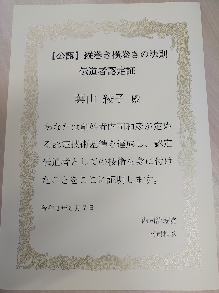 葉山先生は指導者認定コースがある縦巻き横巻きの法則セミナーを受講され、私から直接指導を受けられました。