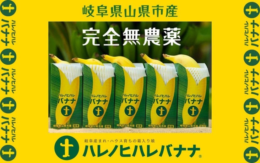 [ハレノヒハレバナナ]は、岐阜県山県市(やまがたし)の自社農園にて無農薬栽培