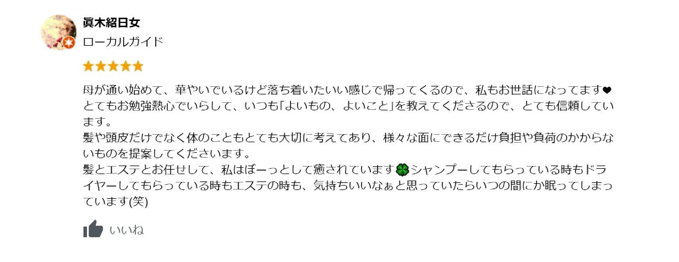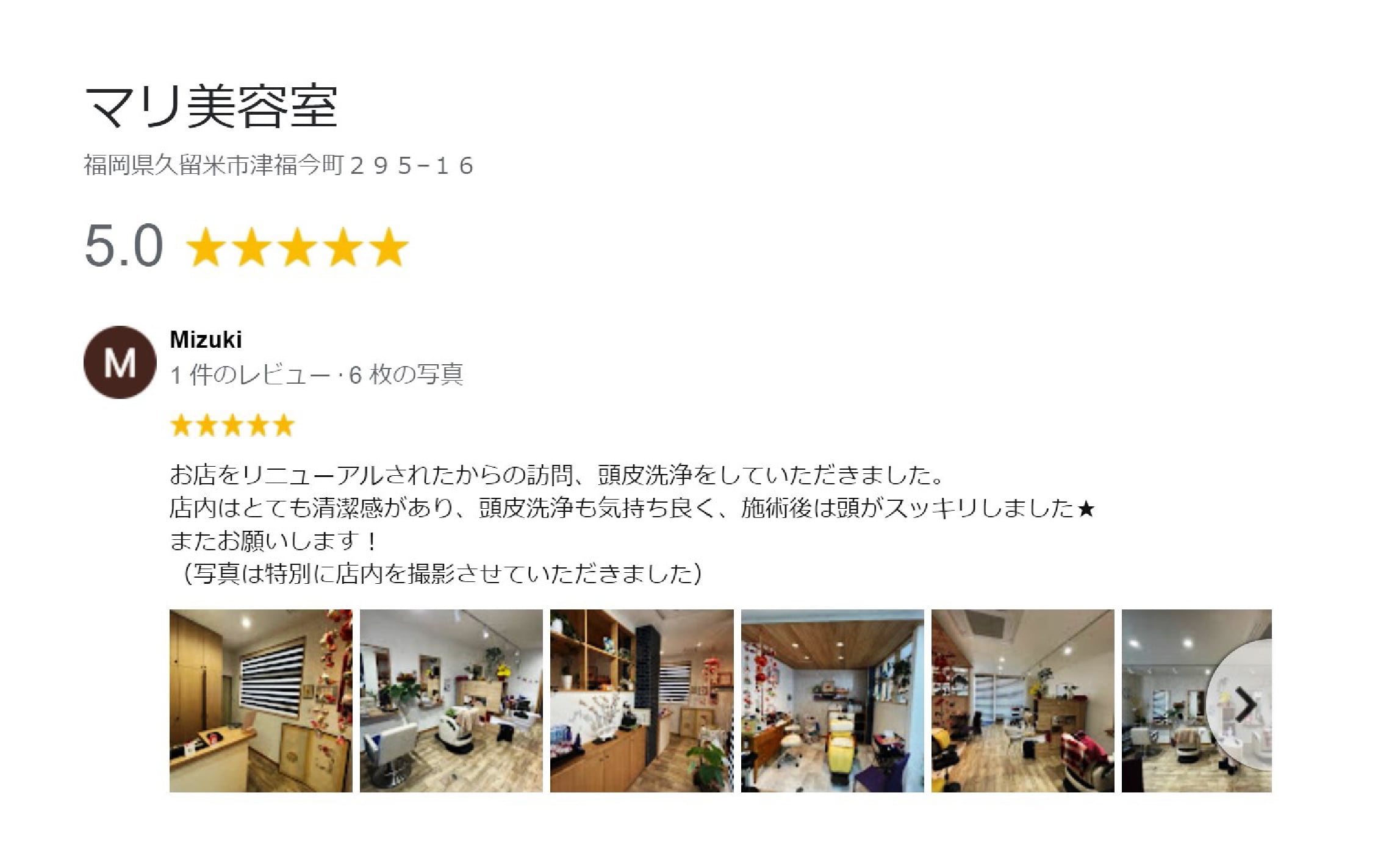 ●マリ美容室へのgoogleクチコミの一部