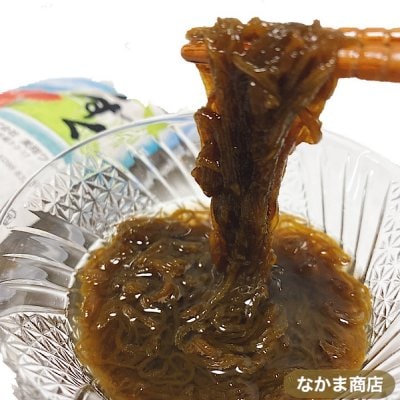 モズク科やナガマツモ科に属する海藻。日本で消費されているもずく95%以上が沖縄産もずくで、約9割が養殖ものです。噛むとワカメのような歯ざわりがありますが、表面がぬるねるとして強い粘りが特徴の触感です。