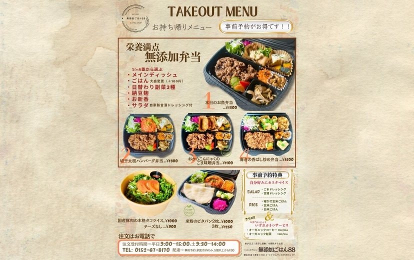 オーガニックショップとしての自然食品点数は網走最大級の300点以上!全て店内で手作りをしている「お弁当・デリ・おにぎり」などのテイクアウトが大人気です。