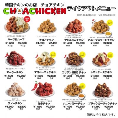 〜韓国チキンのお店チョアチキン(CHOACHICKEN)のメニュー〜
