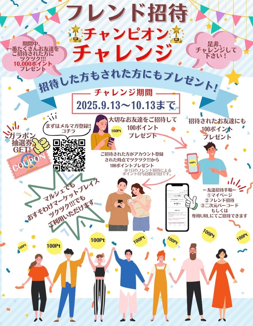 とにかくお得!お友達をたくさんご招待して、ザクザクとポイントを貯まる【フレンド招待 チャンピョン⭐️チャレンジ】