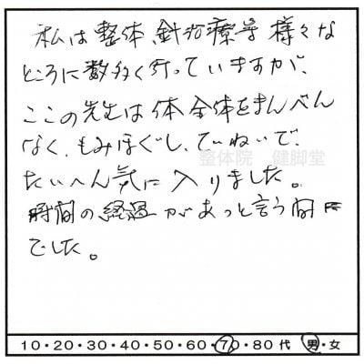 ・お疲れにあ合わせて臨機応変に時間配分を行います。