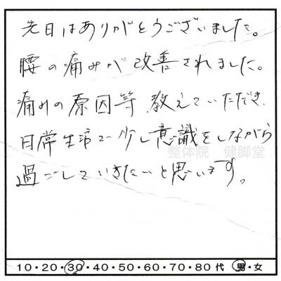 ・足腰が辛い方は【足つぼ40分】+【整体20分】で腰を重点的に施術。