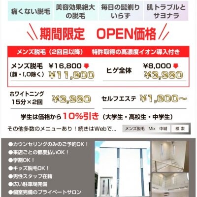 ヒゲ全体脱毛初回限定¥1000ぽっきり