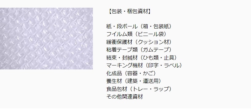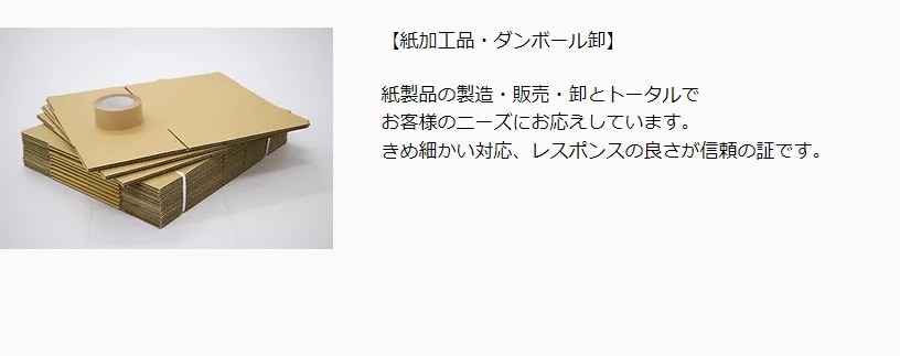 ダンボール製品、紙加工品の製造販売、包装資材、紙器製品、緩衝材等の卸販売を行っております。