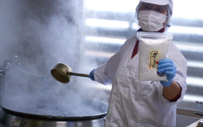 原材料はすべてオホーツク産。地元の農家さんから仕入れた米「ゆめぴりか」で麹造りから始まります。