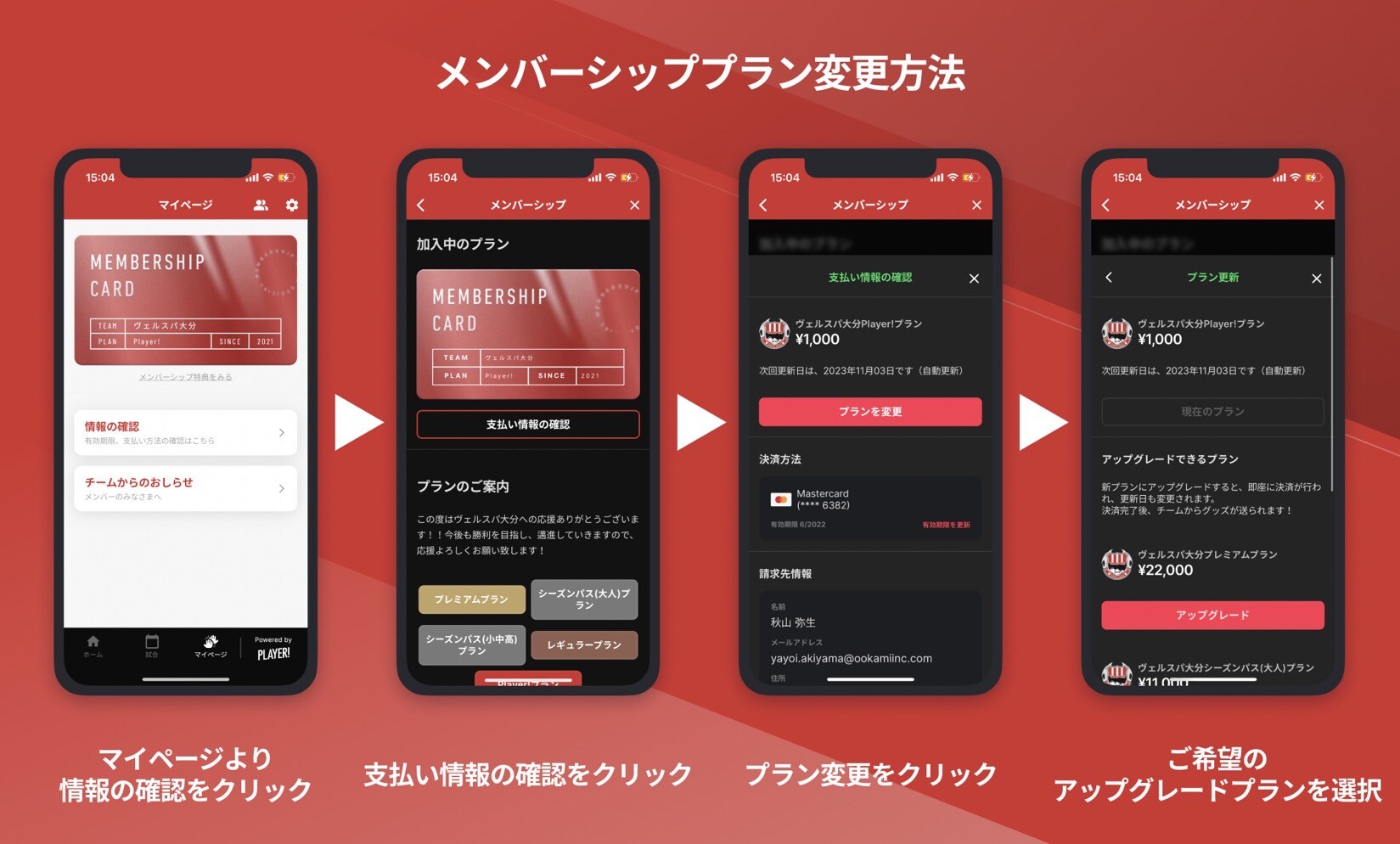 メンバーシップページ内で新プランを選択頂くことで自動アップグレードが可能です。