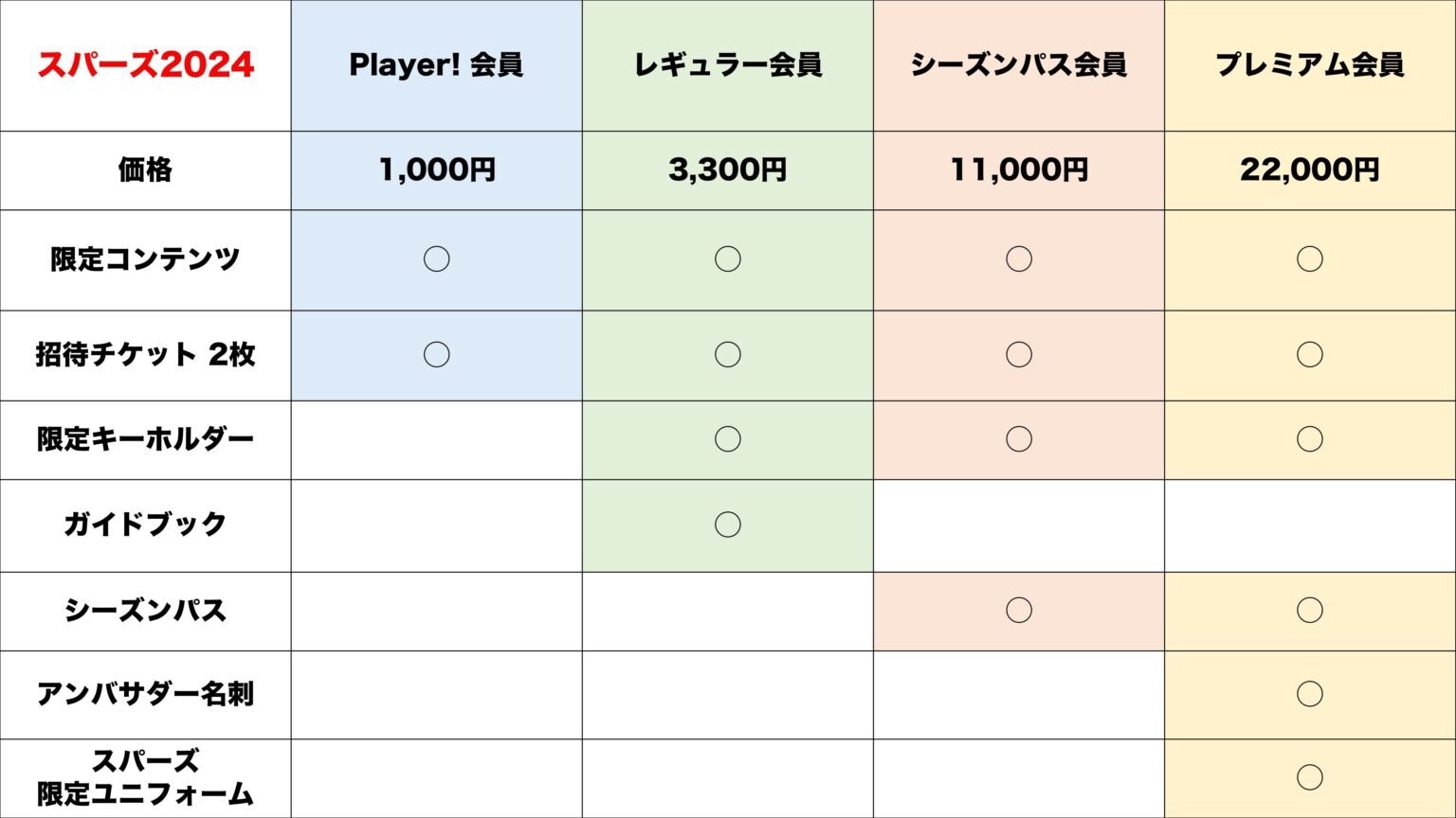 ※Player会員のみホームゲーム会場にてメンバーシップカード提示で招待チケット贈呈。