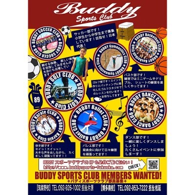 福岡県筑紫野市にあるバディスポーツクラブでは、スポーツを通して健康で明るく元気な子、仲良く、楽しく、遊びに打ち込める子、受け身的で依頼心の強い子ではなく、自発的全身活動を育て、「やる気を起こす」を力点に、創造性に富んだ好奇心の強い子、自分の目で耳で鼻で確かめ、体全体でなんでもやってみたがる子を育成します。サッカー、バスケットボール、クラシックバレエ、空手、ダンス、体操、ゴルフはレッスンがあり、キャンプやスキーなどのイベントもご案内しております。